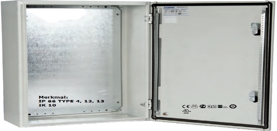 Stahlblech-Wandgehäusen mit einer Tür und mit Schutzart IP 66