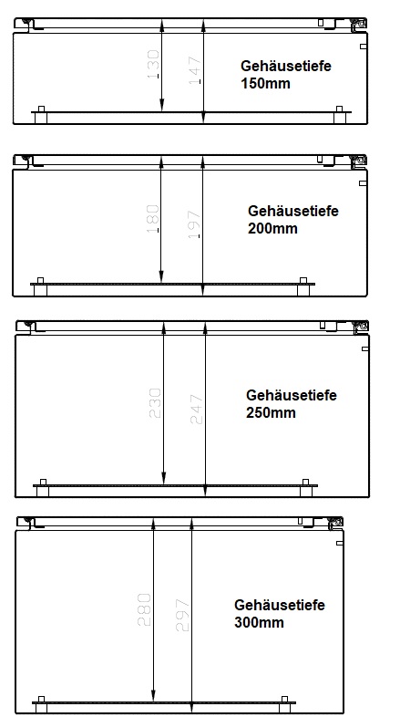 Montageplatten: für Gehäuse bis 700 mm hoch werden unmontiert geliefert, ab 800 mm im Gehäuse montiert.