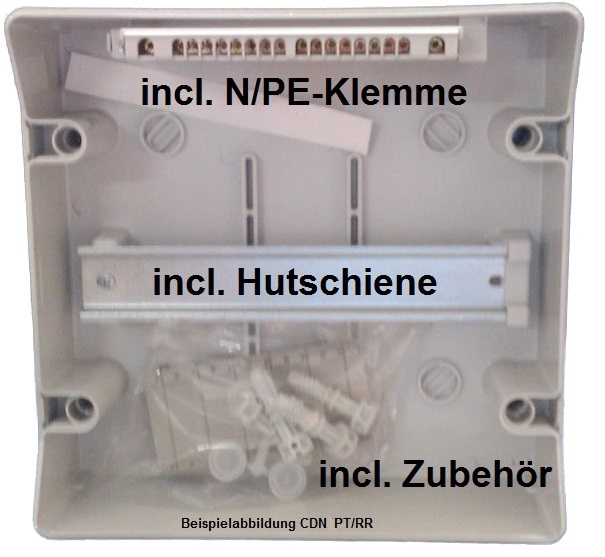 IP65 AP Feuchtraum Verteiler 1-reihig 12TE mit Tragschiene mit N/PE-Klemme