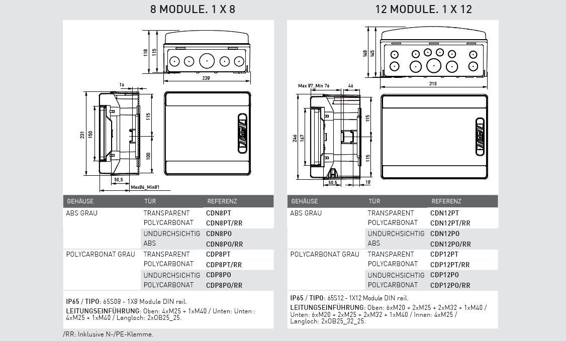 IP65 / TIPO: 65S12 - 1X12 Module DIN rail.