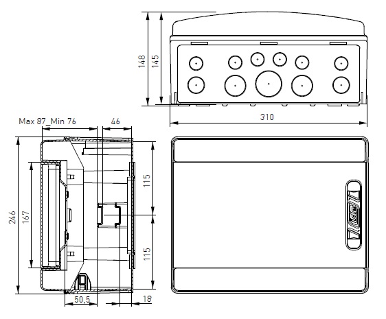 Unten: 6xM20 + 2xM25 + 2xM32 + 1xM40 / Innen: 4xM25 /