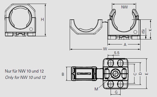 COPA-H-10B Corrugated pipe holder NW10 black with flange