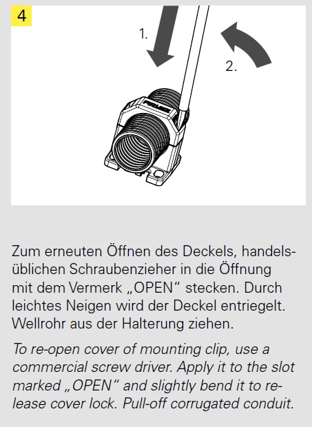 and the clip. The resealable cover connected to the clip provides high pull-out forces as well as easy and reliable installation with corrugated