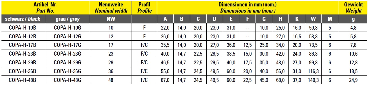 plate, COPA-H offers excellent grip and can be easily installed in applications, characterized by increased forces influencing both the corrugated tube
