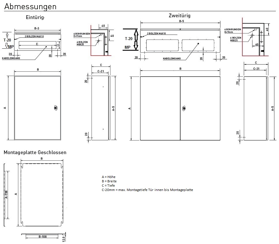 Preview: Schaltschrank 600x400x150 mm HBT mit Sichttür Stahlblech 1-türig IP66