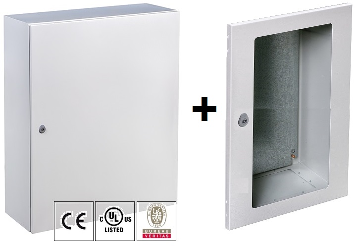 Stahlblech hellgrau RAL 7035 (BHT 600x1200x300) mit verzinkter Montageplatte und abnehmbarer Flanschplatte zur Kabeleinführung. Die Schaltschrank-Wandgehäuse sind aus hochwertigem, kalt gewalztem Stahlblech mit einer Stärke bis 2 mm hergestellt und verfügen über eine gehärtete Oberfläche - Pulverlackbeschichtung (Epoxyd-PE) in RAL 7035.