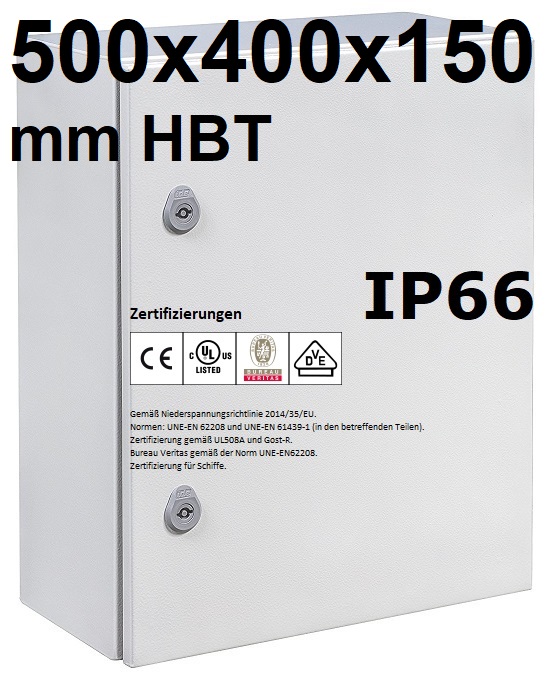 IDE GN504015 Metall Schaltschrank 500x400x150 mm HBT IP66 Stahlblech Wandgehäuse eintürig mit verzinkter Montageplatte und Erdungsband